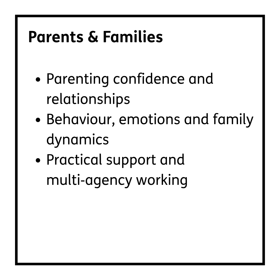 We offer a comprehensive range of 1:1 support sessions, group interventions, staff-focused services, and family-based support. Each service is designed to be adaptable and responsive to individual and organisational needs
